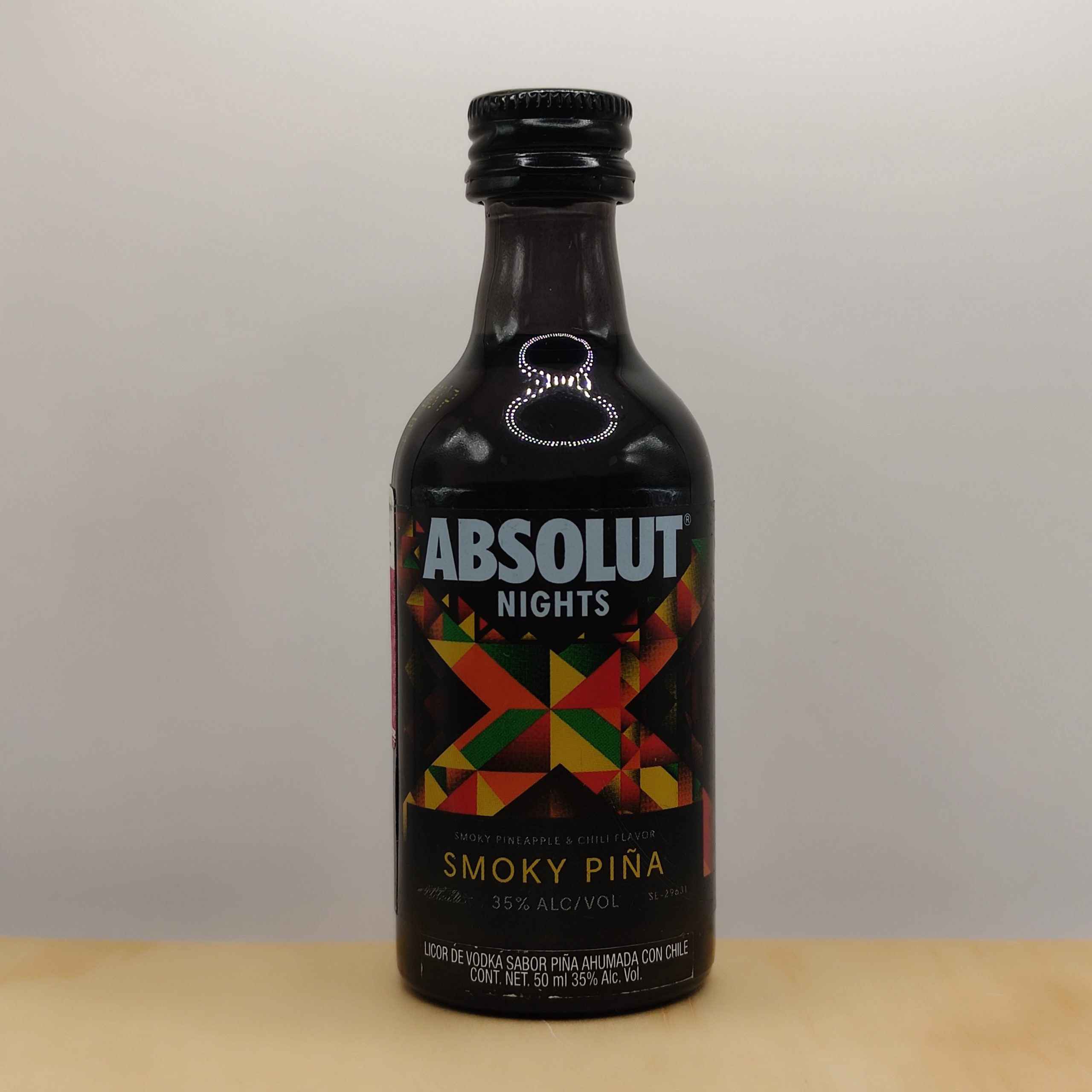 Absolut Nights Smoky Piña de 50 ml en botella de vidrio con 35% de alcohol. Edición especial con notas tropicales y ahumadas, ideal para colección.