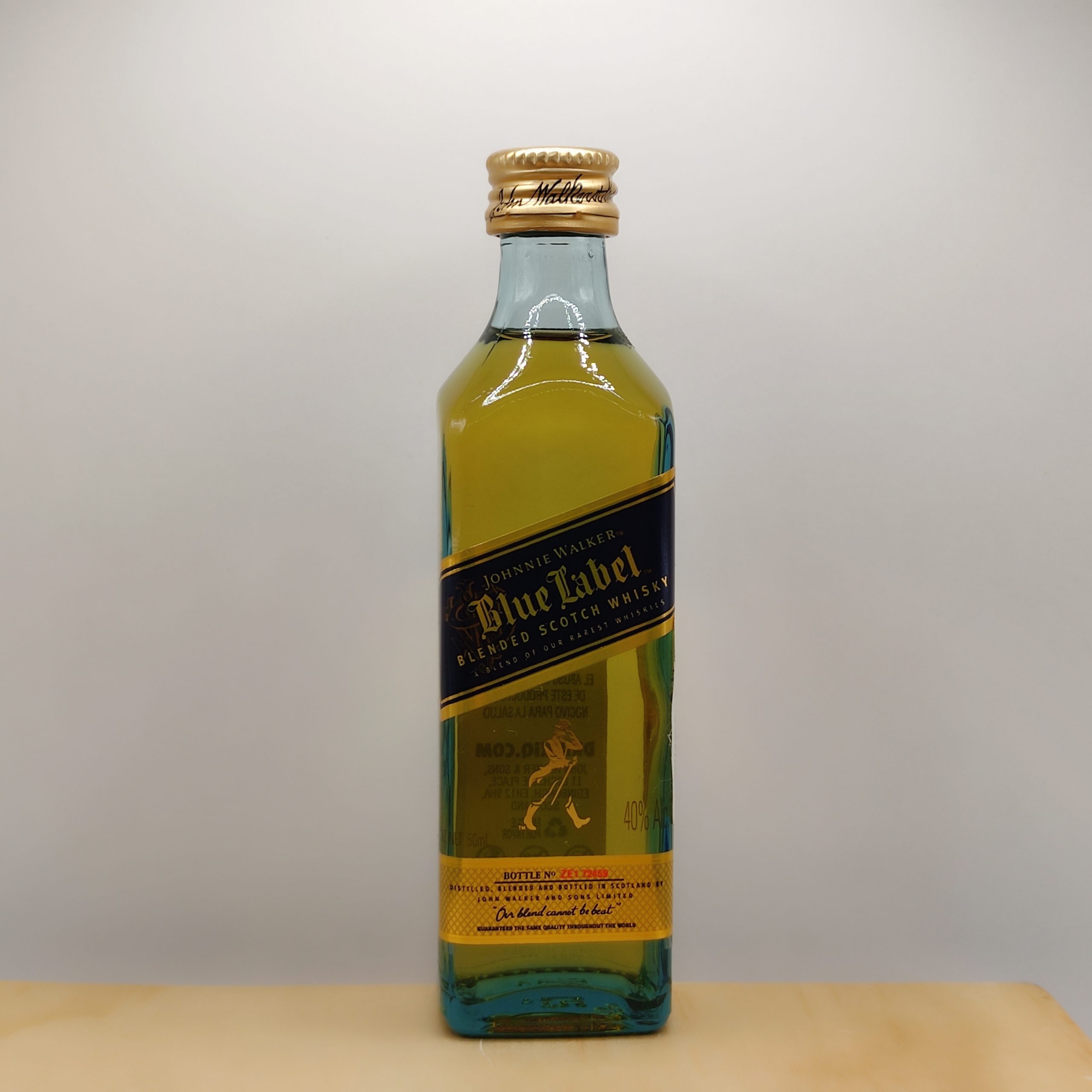 Johnnie Walker Blue Label en presentación miniatura de 50 ml es una de las expresiones más prestigiosas dentro del mundo del whisky escocés. Reconocido por su exclusividad y complejidad, este blended whisky está elaborado a partir de una cuidada selección de barricas excepcionales, logrando un perfil suave, profundo y perfectamente equilibrado.